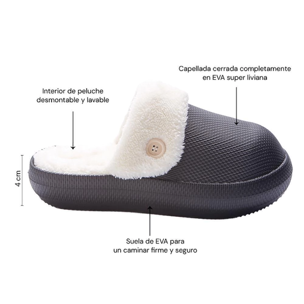 Fabricada en EVA ultraliviana, ofrece una pisada cómoda y liviana, ideal para usar en casa o en salidas invernales al aire libre. Su diseño moderno y elegante la convierte en la mejor opción de pantufla de invierno cómoda y resistente.